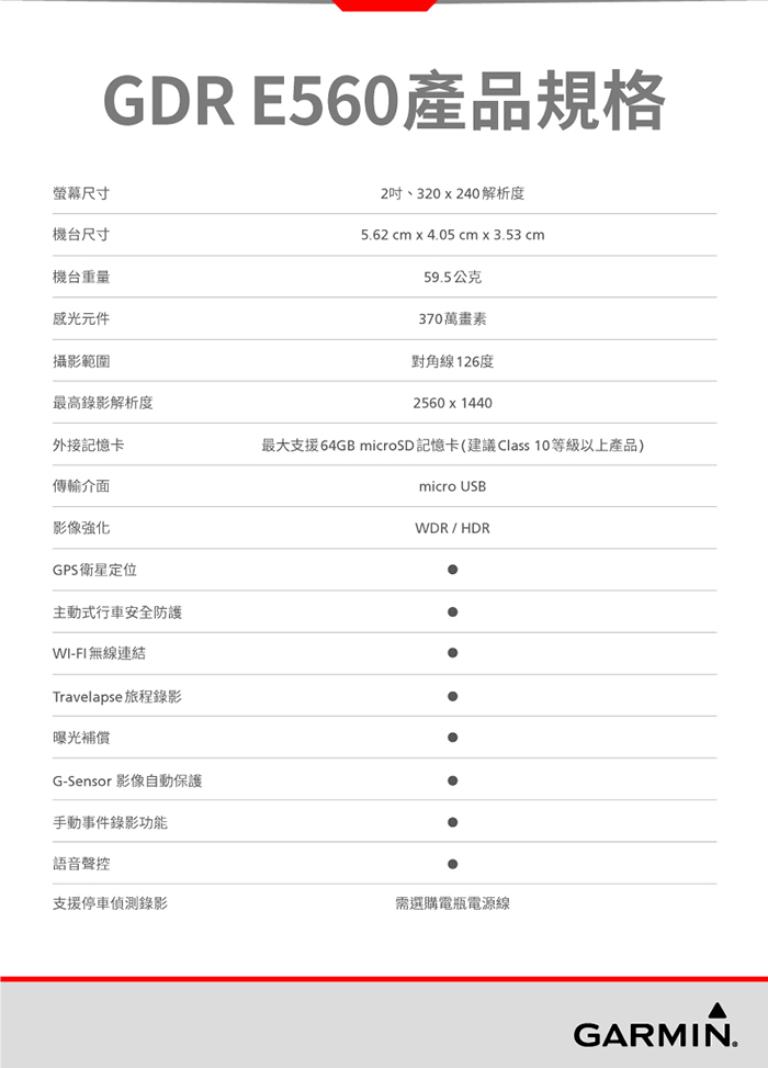 可是了房子後,才家需要 商品【GARMIN】GDR E560 1440p HDR WIFI 控行器"