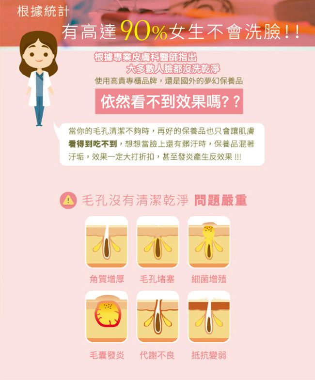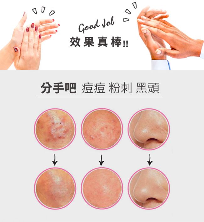 抗痘最好方式:平常要清上毛孔的油脂污垢,本品清毛口程中搭配光,的鼻翼探可到不毛孔;毛孔乾痘痘不再!