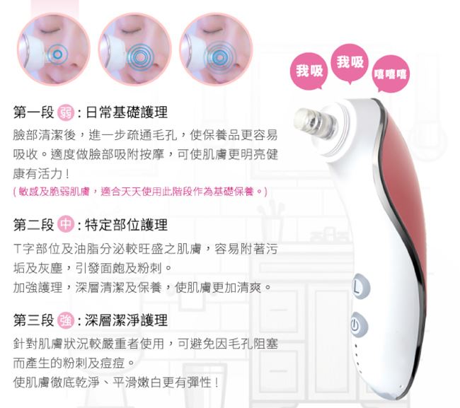 .取下防,套上吸附探,於欲清部位後,按下按源,即始使用本。