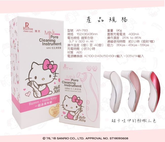 Runve嫩芙Hello Kitty 用心合作:【Runve嫩芙】除痘去粉刺毛孔理器/抗痘(AR-783)Hello Kitty限量款