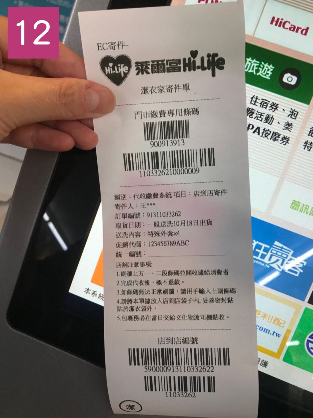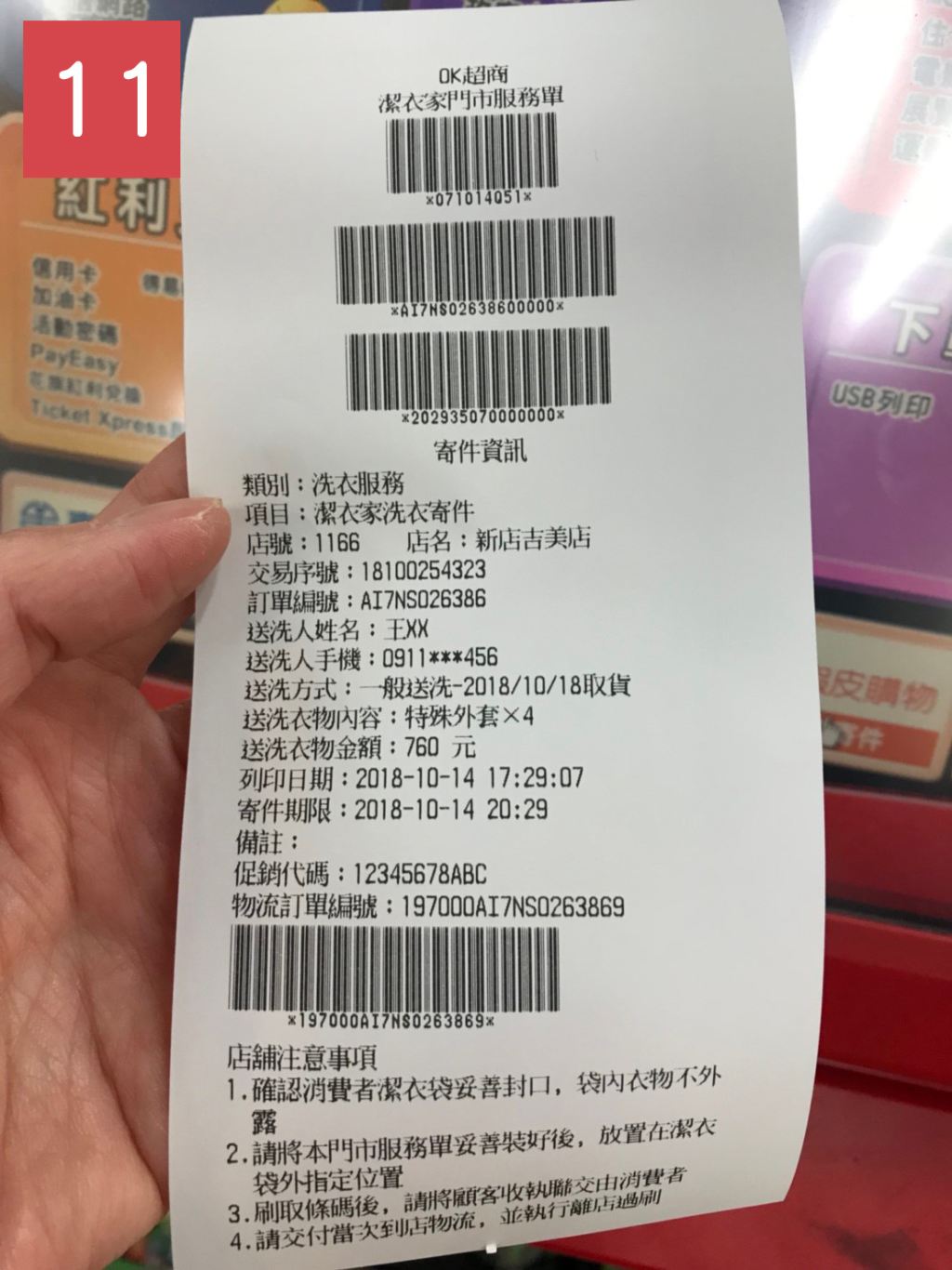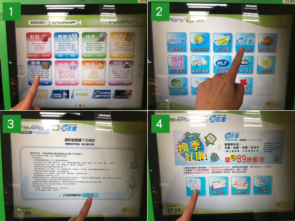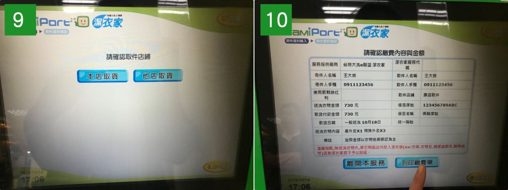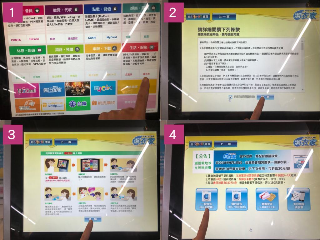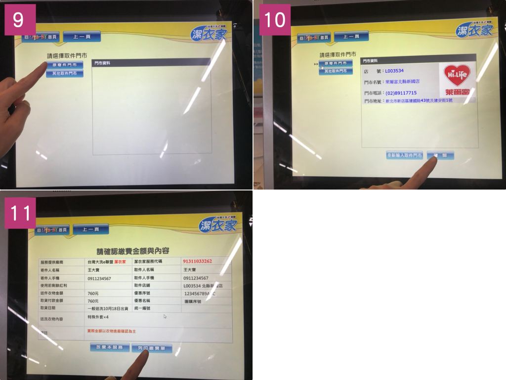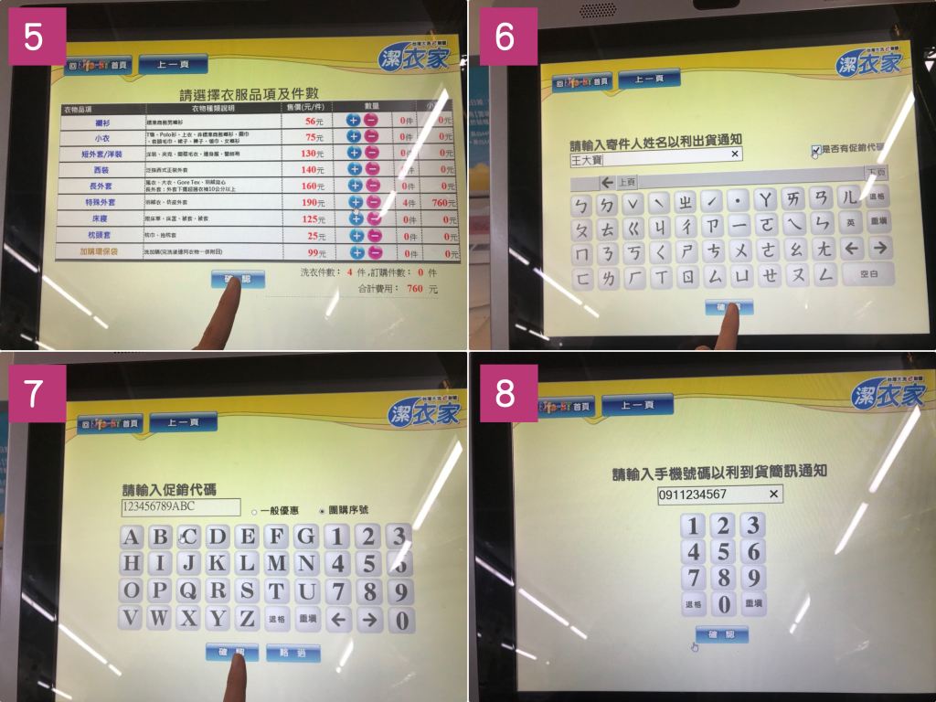 衣物到市後,心以送的方式通知,收到後即可至超商取衣物。