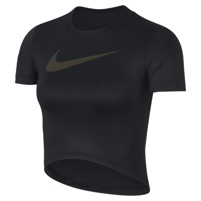 Nike Pro 女款訓練短版上衣採用貼合短版設計,以及精心配置的網布,可在健身時常保涼爽。