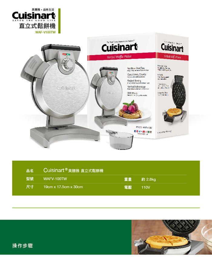 【美 Cuisinart】美膳雅 直立式 waf-v100tw (附糊量杯及食) ,推,箱,CP值,,,便宜,惠,介,排行,精,特,周年,,限