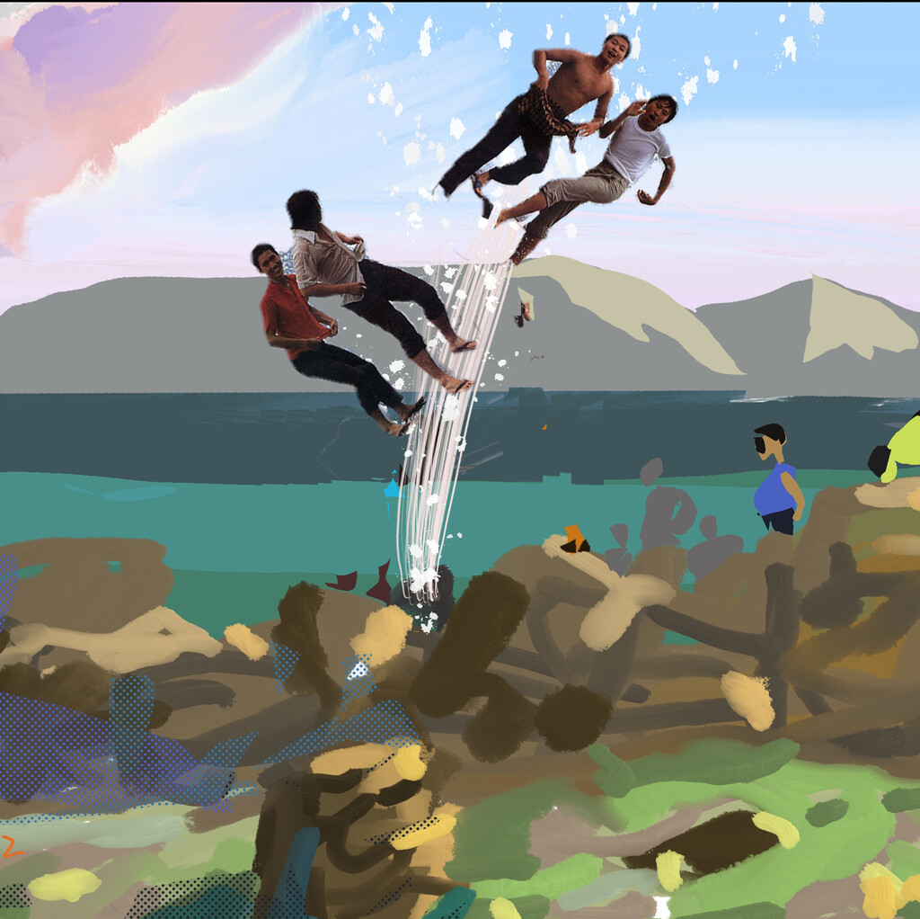 「那候就睡在,前面就是沙,很很好睡,後了港,沙就了,就睡外面了。」