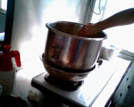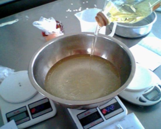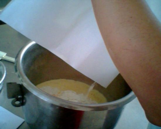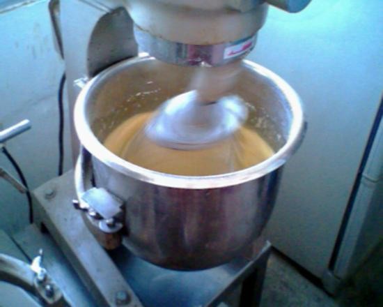 4.加入水和沙拉油〈先加至35度〉,再用慢速拌