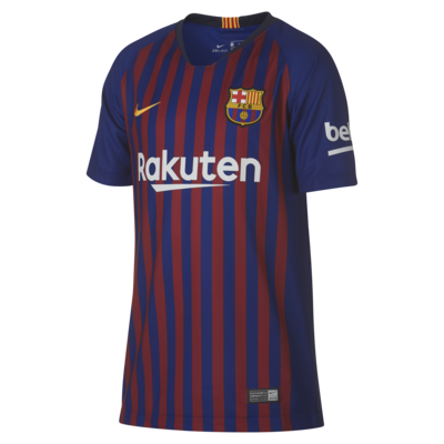 2018/19 FC Barcelona Stadium Home 大童足球球衣採用透氣排汗布料,場上場下均能常保涼爽舒適。