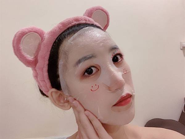 材真的很服 不用刻意角度 或是按平整 面膜就好好地在上了~~~~