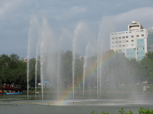 之後人就喝著茶走逛。有水池呢!而且,哇!有彩虹呢!