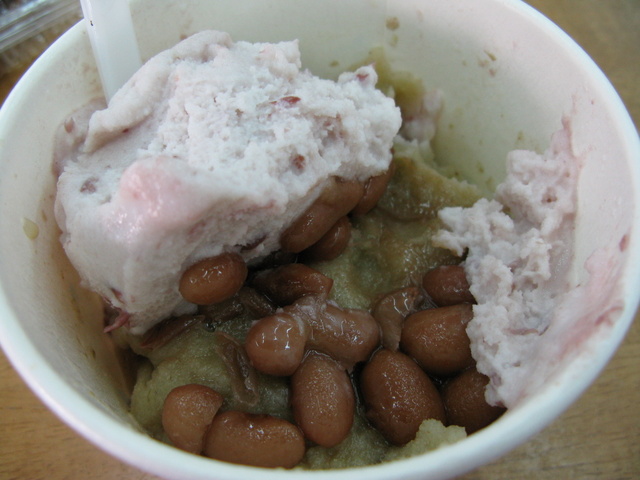 上和冰。一碗才25元啊!同事下方的是豌豆,但我好像吃不出那口感。不好吃又便宜啊!值得推!