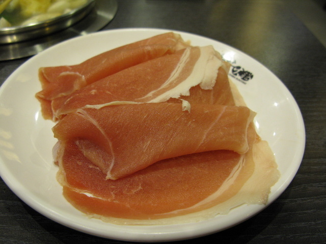 的肉、牛肉都是切的。肉是黑肉。光是生肉看起就很好吃呢!