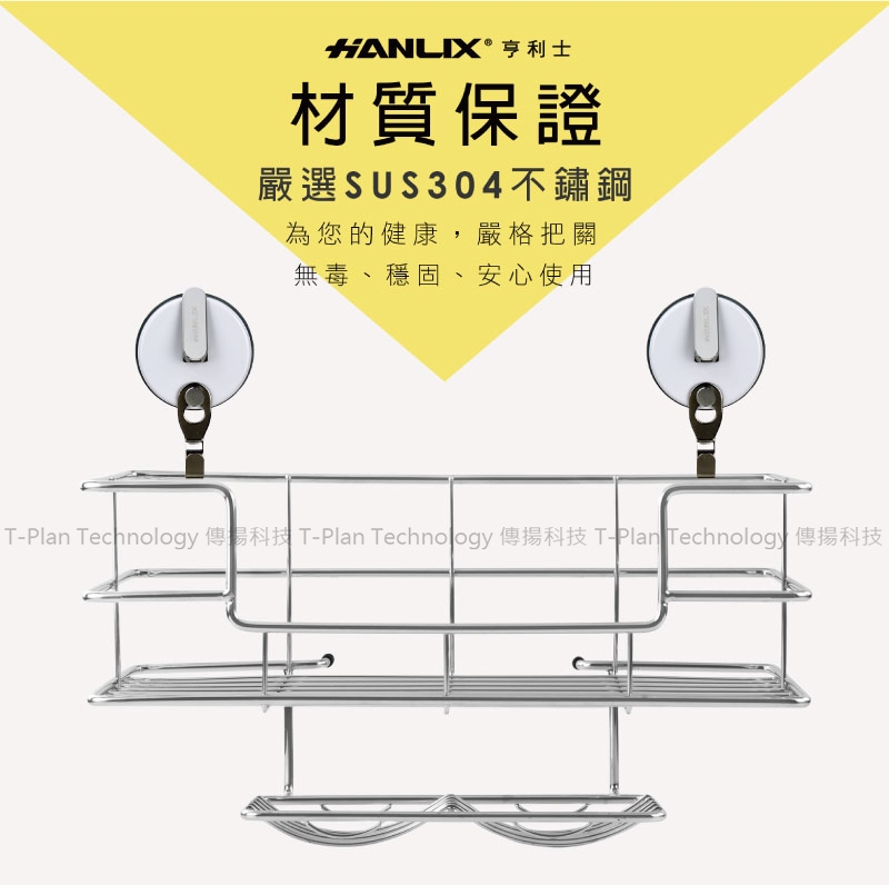Hanlix 304不浴室置物架-400mm皂型 (含力吸)推