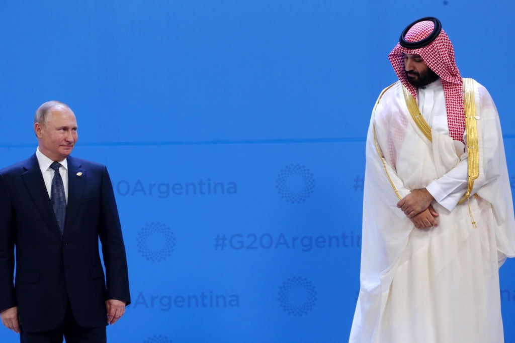 俄斯沙特近期就石油一事未能成。普京及穆罕默德2018年11月在阿根廷G20峰上的互。(Getty)