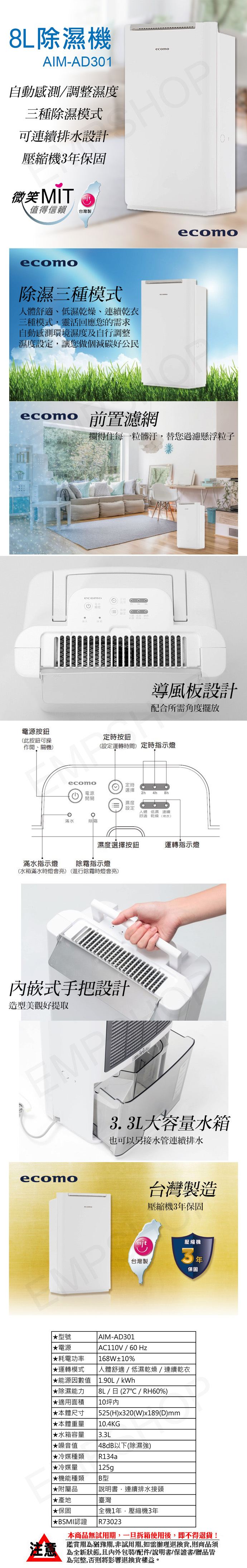 【日本ecomo】能清 8L除 AIM-AD301 ,推,箱,CP值,,,便宜,惠,介,排行,精,特,周年,,限