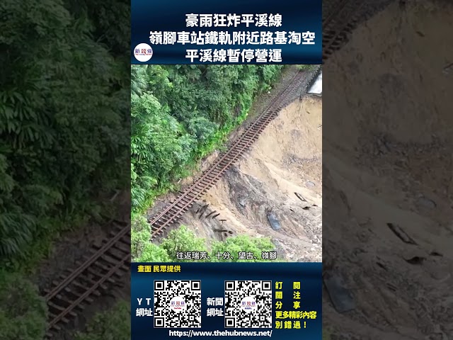 受到日大雨的影,新北市台平溪站以北500公尺,附近路基被淘空百公尺,透民空拍,直路基被淘空的面,且今天三貂到大坡有再滑的情形,目前平溪全停。