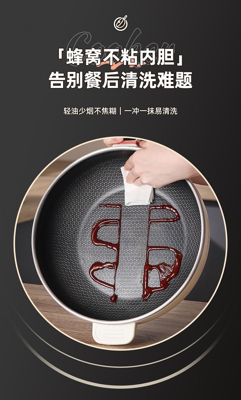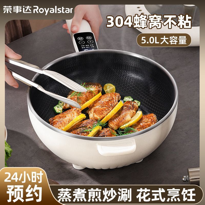 榮事達蜂窩電炒鍋家用多功能不粘鍋大功率爆炒304不鏽鋼電熱火鍋
