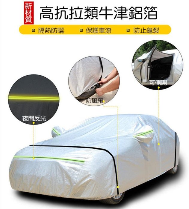 優寶購物《ubao.Tw》特貨品商城,黑貓宅配,取貨付款,【頂級尊爵版】類牛津鋁膜材質 汽車車罩 抗撕扯【送防盜鎖繩+收納袋+可開側門】 防水防塵防曬防刮 多種規格 防紫外線 | Yahoo拍賣