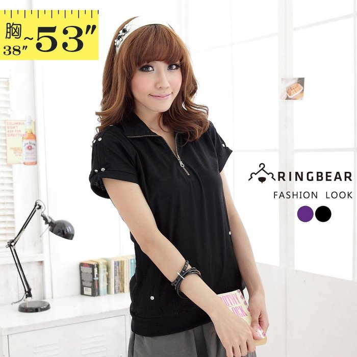 優寶購物《ubao.Tw》特貨品商城,黑貓宅配,取貨付款,加大尺碼--造型變化釘釦飾帶拉鍊口袋素面棉織上衣(黑.紫XL-5L)-U129眼圈熊中大尺碼 | Yahoo拍賣