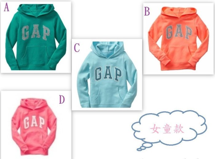 優寶購物《ubao.Tw》特貨品商城,黑貓宅配,取貨付款,美國 GAP LOGO 男、女童 連帽T恤 (大人可穿) | Yahoo拍賣