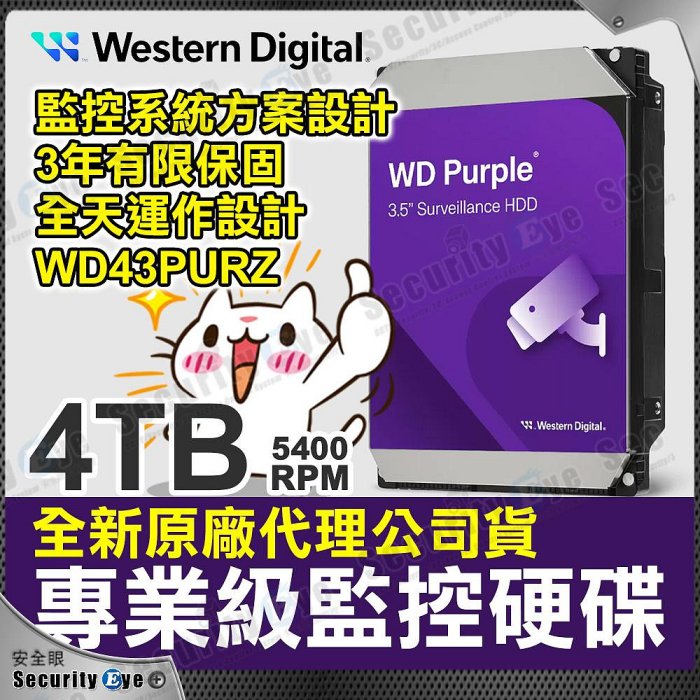 優寶購物《ubao.Tw》特貨品商城,黑貓宅配,取貨付款,安全眼 全新 原廠公司貨 4TB 3.5吋 WD 威騰 監視 監控 影音 紫標 硬碟 SATA WD43PURZ DVR NVR | Yahoo拍賣