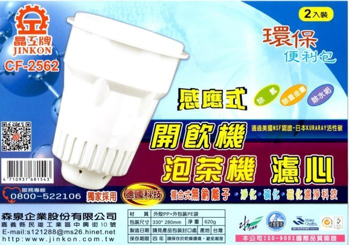 優寶購物《ubao.Tw》特貨品商城,黑貓宅配,取貨付款,【JINKON 晶工牌】感應式開飲機專用環保濾心(2入)CF-2562 | Yahoo拍賣