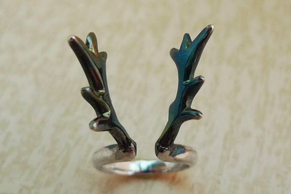 優寶購物《ubao.Tw》特貨品商城,黑貓宅配,取貨付款,【提摩爺爺工坊】英雄聯盟,LOL,個性化純銀 "鹿角" 硫化染黑 925 銀飾 造型戒指 | Yahoo拍賣