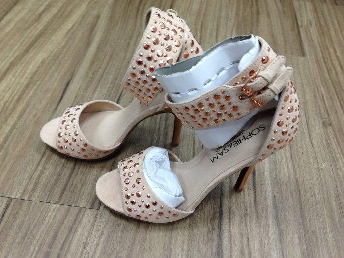優寶購物《ubao.Tw》特貨品商城,黑貓宅配,取貨付款,轉賣專櫃Sophie & Sam 中跟涼鞋 鉚釘露趾鞋 魚口鞋 40號 | Yahoo拍賣