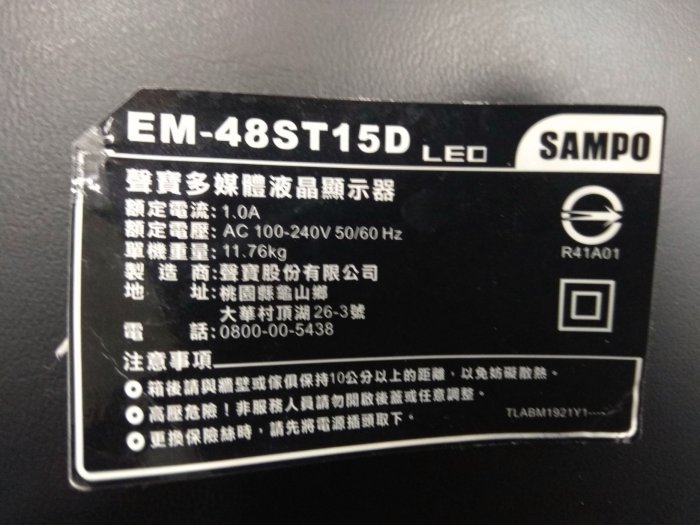 優寶購物《ubao.Tw》特貨品商城,黑貓宅配,取貨付款,聲寶48吋LED液晶電視EM-48ST15D拆賣 | Yahoo拍賣