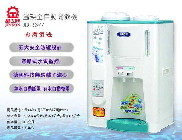 優寶購物《ubao.Tw》特貨品商城,黑貓宅配,取貨付款,開飲機【晶工牌】JD-3677 節能除氯溫熱飲水機 5項安全設計 "台灣製造" 小家庭/辦公室適用 ◎又仁便利屋◎ | Yahoo拍賣