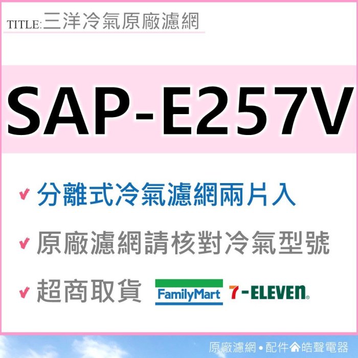 優寶購物《ubao.Tw》特貨品商城,黑貓宅配,取貨付款,現貨 SAP-E257V 三洋冷氣濾網 一組2片 原廠材料 公司貨 分離式冷氣 原廠濾網 【皓聲電器】 | Yahoo拍賣