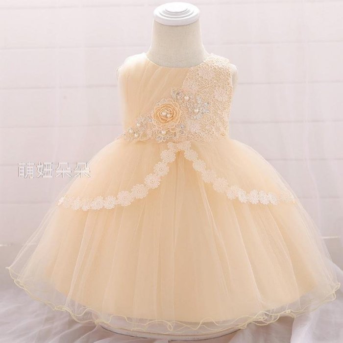 優寶購物《ubao.Tw》特貨品商城,黑貓宅配,取貨付款,♥萌妞朵朵♥滿月-3歲蕾絲花朵釘珠純棉公主裙(黃色)/百日洗禮服/女童套裝/花童禮服 | Yahoo拍賣
