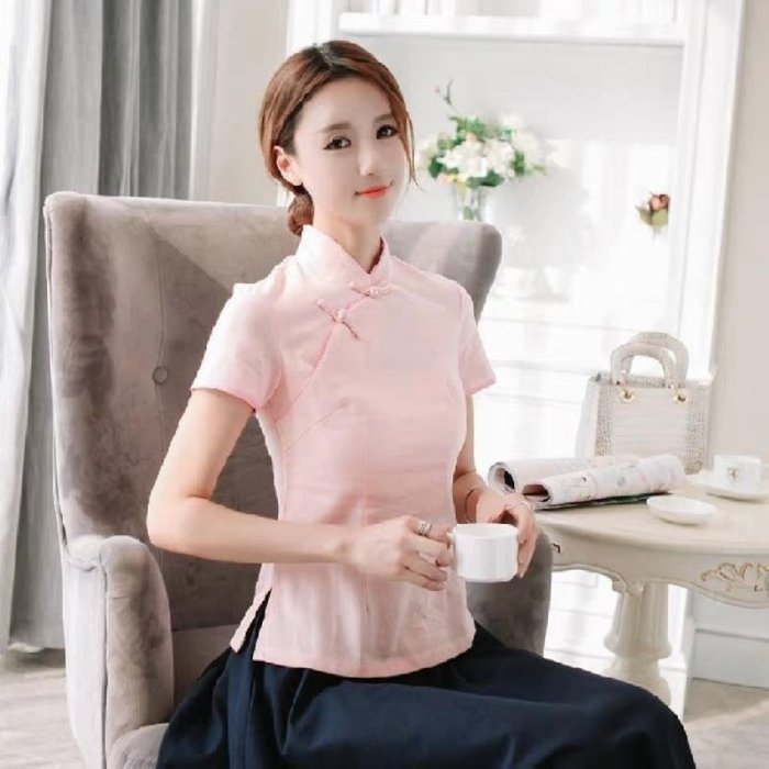 優寶購物《ubao.Tw》特貨品商城,黑貓宅配,取貨付款,【智美精品屋】棉麻夏季新款中國風旗袍領短袖上衣 粉紅色 | Yahoo拍賣