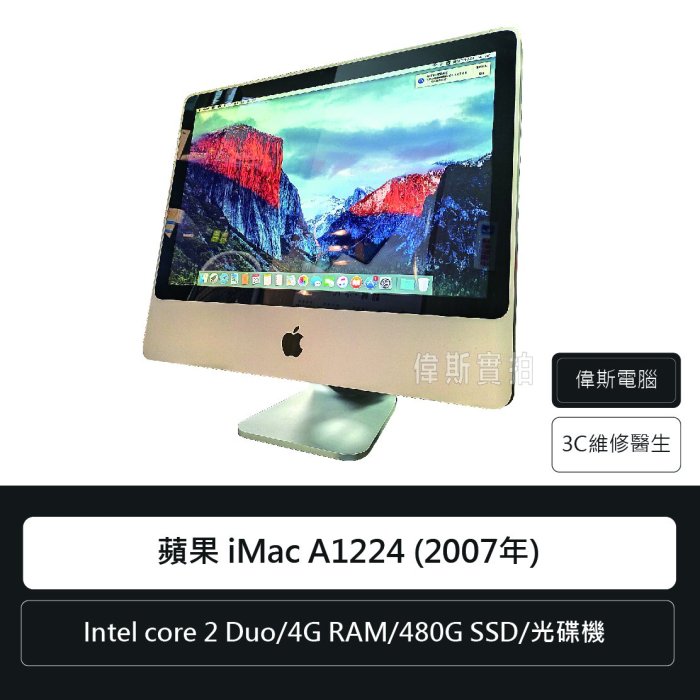 優寶購物《ubao.Tw》特貨品商城,黑貓宅配,取貨付款,☆偉斯電腦☆apple 蘋果 iMac 20 英吋 2007 macOS/雙核心/4G/480G SSD(全新)二手桌機 | Yahoo拍賣