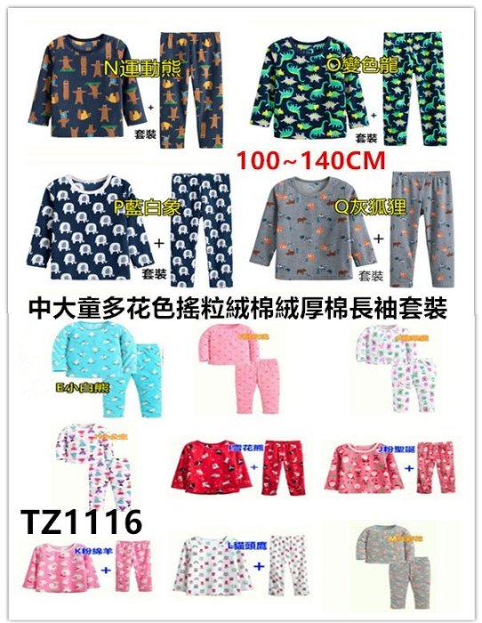 優寶購物《ubao.Tw》特貨品商城,黑貓宅配,取貨付款,**阿布童裝**【TZ1116】秋冬中大童多花色搖粒絨棉絨厚棉長袖套裝(長袖上衣+長褲)家居服 100~140CM | Yahoo拍賣
