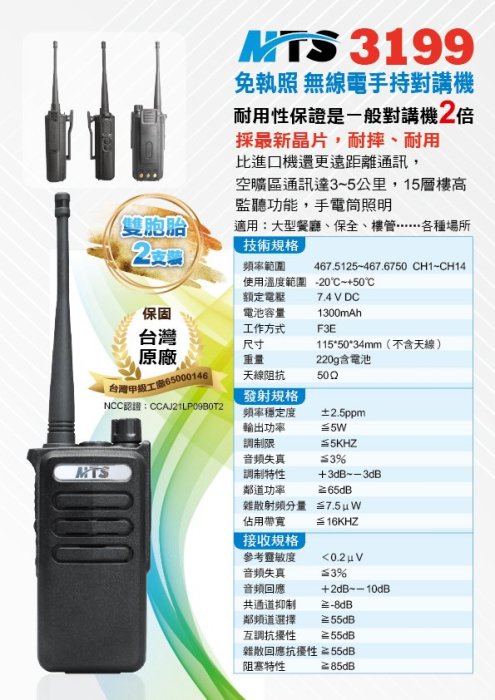優寶購物《ubao.Tw》特貨品商城,黑貓宅配,取貨付款,【通訊達人】【含稅價】MTS-3199 超值2入組業務型免執照無線電對講機 | Yahoo拍賣