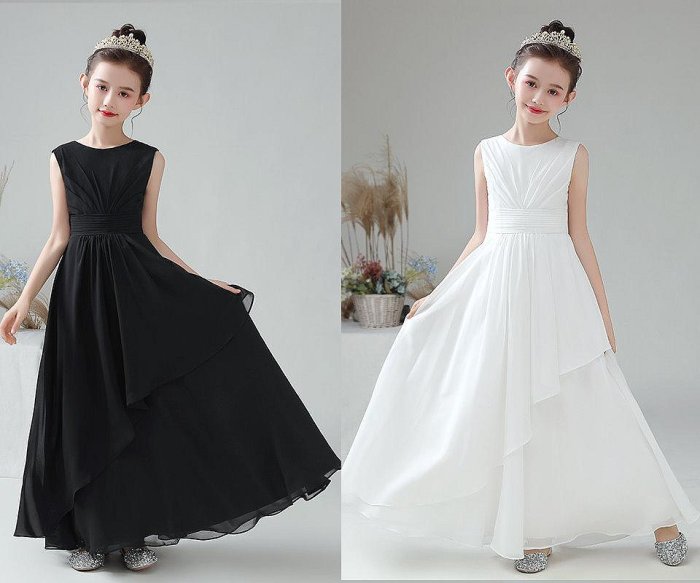 優寶購物《ubao.Tw》特貨品商城,黑貓宅配,取貨付款,新竹金奇童裝兒童現貨長款女童公主裙禮服白色黑色雪紡長裙鋼琴表演服音樂演奏 | Yahoo拍賣