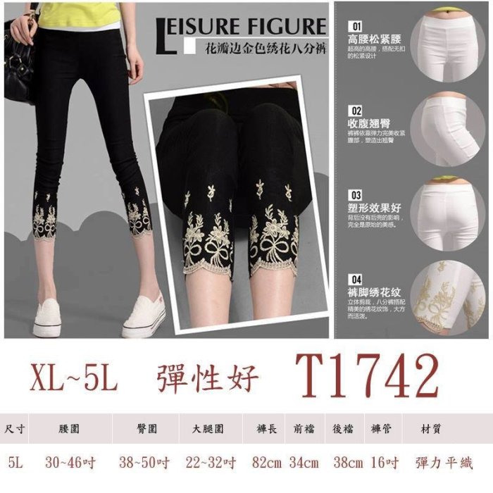 優寶購物《ubao.Tw》特貨品商城,黑貓宅配,取貨付款,衣喆服飾批發【T1742】加大尺碼 高腰顯瘦 繡花七分褲 內搭褲/3XL | Yahoo拍賣