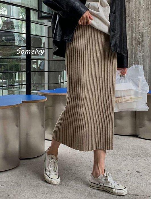 優寶購物《ubao.Tw》特貨品商城,黑貓宅配,取貨付款,♥ Someivy ♥ 正韓 好搭 粗坑條 合身彈性針織裙 窄裙 | Yahoo拍賣