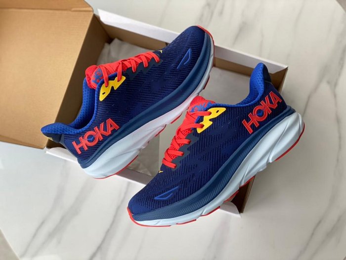 優寶購物《ubao.Tw》特貨品商城,黑貓宅配,取貨付款,【實拍】HOKA ONE ONE CLIFTON 9 慢跑鞋 深藍紅 網布 輕量 緩震 路跑鞋 男女鞋 | Yahoo拍賣