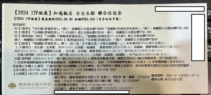 優寶購物《ubao.Tw》特貨品商城,黑貓宅配,取貨付款,(優惠價)國泰 和逸飯店 全台五館 聯合住宿券 (2026/09/30到期) 高雄三多商圈可面交 | Yahoo拍賣