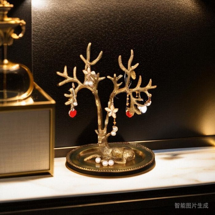 優寶購物《ubao.Tw》特貨品商城,黑貓宅配,取貨付款,黃銅小鹿北歐入戶項鏈架門口梳妝臺玄關鑰匙盤收納托盤擺件 | Yahoo拍賣