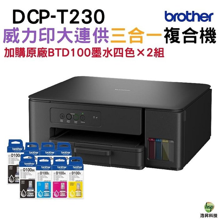 優寶購物《ubao.Tw》特貨品商城,黑貓宅配,取貨付款,Brother T230 第四代威力印連續供墨複合機 加購BTD100原廠墨水四色2組 | Yahoo拍賣