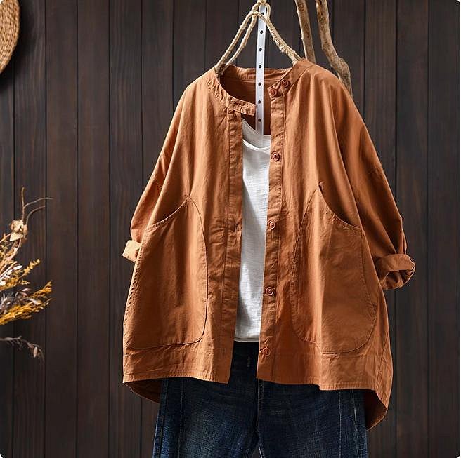 優寶購物《ubao.Tw》特貨品商城,黑貓宅配,取貨付款,【子芸芳】2025春夏寬鬆大碼洋氣開襟衫個性大口袋立領襯衫外套七分袖防曬外套 | Yahoo拍賣