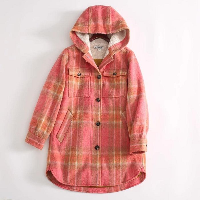 優寶購物《ubao.Tw》特貨品商城,黑貓宅配,取貨付款,現貨=86號店=歐美 格紋刷毛面料 絨毛帽裡邊雙材質裡布 中長款 女外套 如圖色 | Yahoo拍賣