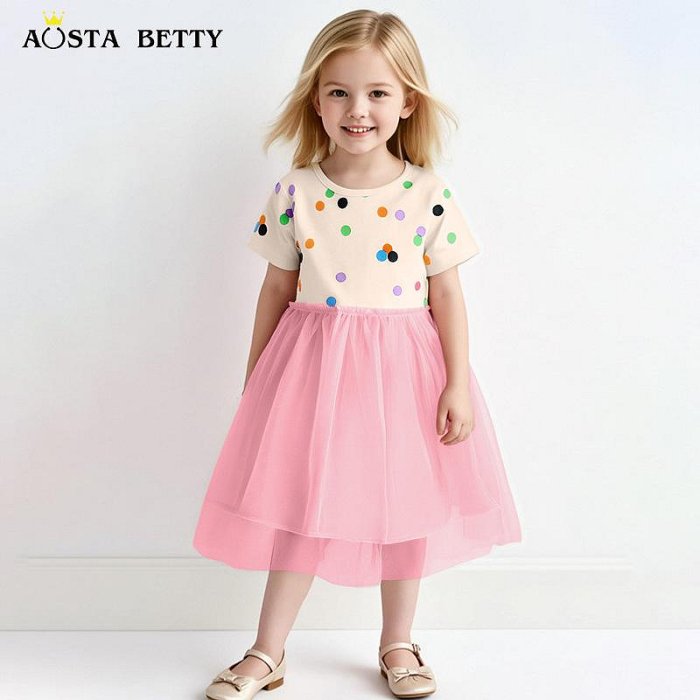 優寶購物《ubao.Tw》特貨品商城,黑貓宅配,取貨付款,【秋秋童裝】夏季女童網紗連衣裙歐美風格波點印花兒童公主裙針織圓領短袖童裙 | Yahoo拍賣
