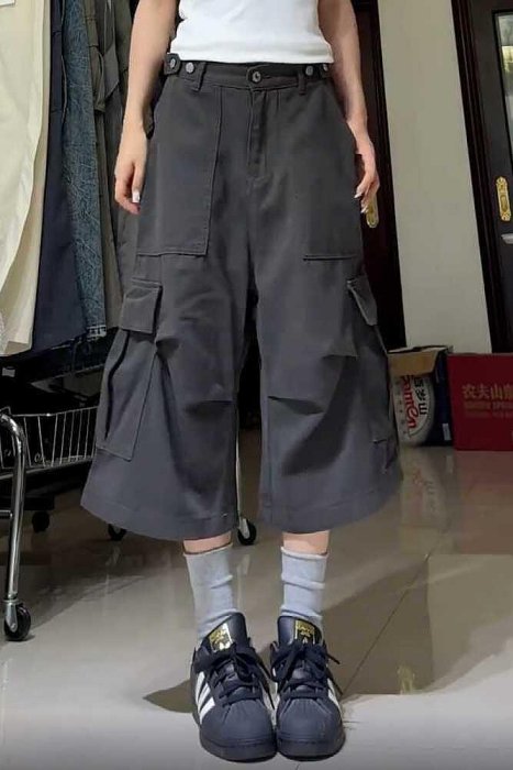 優寶購物《ubao.Tw》特貨品商城,黑貓宅配,取貨付款,美式復古高腰工裝短褲女夏季新款高街寬松闊腿顯瘦直筒七分中褲子 | Yahoo拍賣