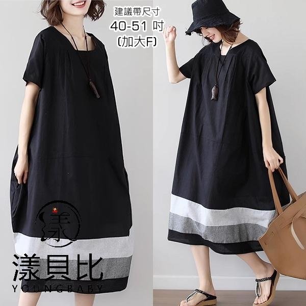 優寶購物《ubao.Tw》特貨品商城,黑貓宅配,取貨付款,漾貝比【9155568】中大尺碼女裝 梯形領撞色裙襬長版洋裝(40-51) | Yahoo拍賣