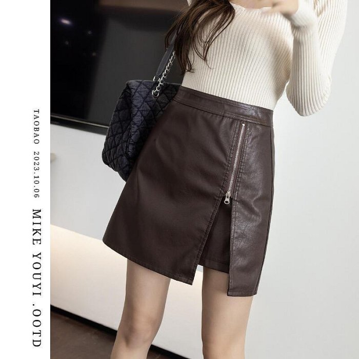 優寶購物《ubao.Tw》特貨品商城,黑貓宅配,取貨付款,【熱品】棕色皮裙女2023新款秋冬開叉拉鍊pu皮半身裙咖色a字包臀半裙 | Yahoo拍賣