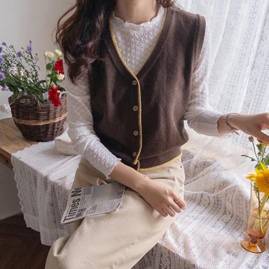 優寶購物《ubao.Tw》特貨品商城,黑貓宅配,取貨付款,Bellee 正韓 可愛撞色V字領羊毛針織背心 【0912-27】 | Yahoo拍賣