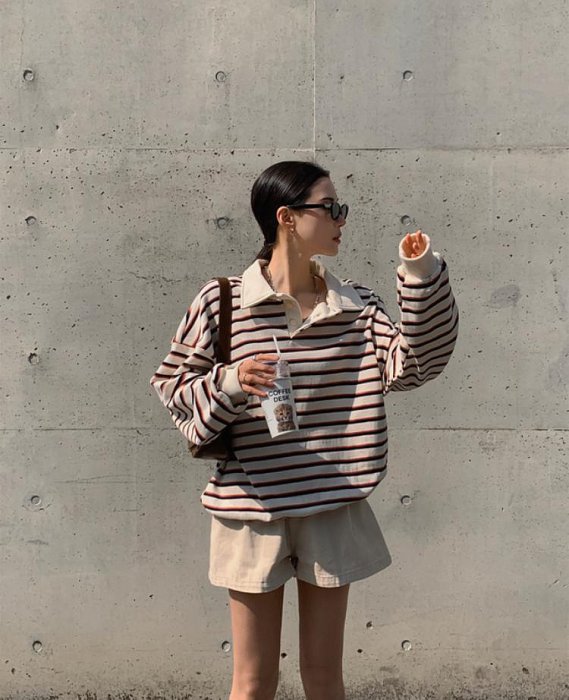 優寶購物《ubao.Tw》特貨品商城,黑貓宅配,取貨付款,[預購] [YOLATENGO] 歐膩橫條POLO衫 | 韓系休閒顯瘦 | 寬鬆條紋POLO領上衣 | 女生休閒穿搭必備 長袖上衣 | Yahoo拍賣