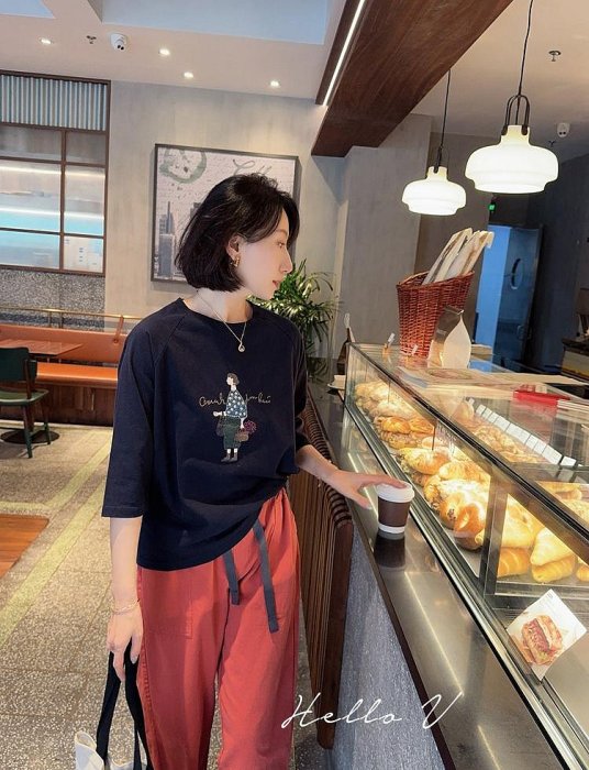 優寶購物《ubao.Tw》特貨品商城,黑貓宅配,取貨付款,Hello V 正韓 甜美女孩圖樣質感長T*灰白深藍*【N1010-59】 | Yahoo拍賣